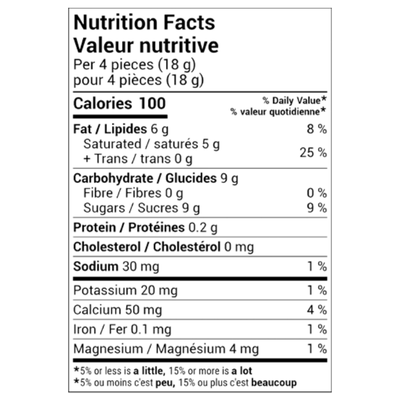 هر ۴ تکه (۱۸ گرم) از این شکلات میلکو سایرو، تنها حاوی ۱۰۰ کالری است. این میزان، یک شیرینی متعادل و کوچک است که بدون احساس سنگینی، لذت طعم شیری شکلات را به مشتریان شما هدیه میدهد.